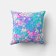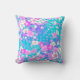 En snygg kastkudde med ett vackert blommigt mönster med vita och rosa blommor på en blå bakgrund.