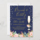 Söt brunch och bubbelglas inbjudningskort för möhippan med olika, mestadels rosa blommigt arrangemangare och faux guld-folie och champagneglas med mörk blått bakgrund. Rubriken är redigerbar och skapar mallen mycket flexibel. Den här blommigten är ett bra sätt att skapa en ny möhippa.