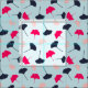 Den här väven har en helt över mönster av ginkgo-löv i marin blått, magenta och rosa mot en ljusblå bakgrund. Grafiken i löv har ett enkelt, modernt stil.