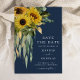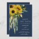 Anpassningsbar Text Navy Blue Rustic Solros Bröllop spara datum.