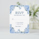 Blå rosor bröllop RSVP-kort design; ideal blomdesign för bröllop, årsdagar, förlovning eller fest. Matchande brevpapper tillgängligt.