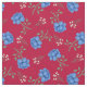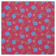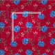 Blå rosor på röd kaliko tyg