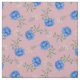 Kvistar av blå rosor och vit gipsört i ett charmerande kalikotryck