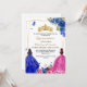 Gratulerar till din Quinceañera med vår utsökta inbjudan till royal Blue Blommigt med delikata fjärilar och en regal krona motif.dammig blå bakgrund anger perfekten för tillfälle.