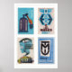 Blå rumänska tändsticksboxetiketter Grid Print, Vi Poster