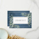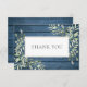 Med delikat löv i vattenfärgen på en skorstensblå träbakgrund får du ett tackmeddelande i eleganten. Du kan anpassa dig med ditt eget tack till ditt meddelande på motsatt sida. Designad av Thisisnotme©