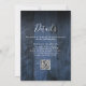 Denna blå rustic boho lada träbakgrund bröllopsinbjudan kan anpassas med din information i modern typografi och en bröllopswebbplats QR-kod på baksidan. Designad av Thisisnotme