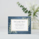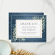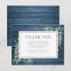 Ett elegant minneskort för begravning med akvarell botanisk grönska på en rustik blå träbakgrund. Du kan anpassa det med ditt eget tackmeddelande. Designad av Thisisnotme©
