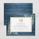 Judisk minnesgudstjänst tackkort med akvarellgrönska blad på en rustik blå trädgård bakgrund. Du kan anpassa den med ditt eget tackmeddelande. Designad av Thisisnotme