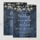 Blå Rustik Trä Bröllopsbelysning QR-kod Inbjudningar