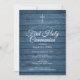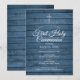 Blå rustik trä första heliga kommunion inbjudan