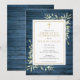 Blå rustik trägrönska första heliga kommunion inbjudningar