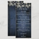 Dessa blå rustika strängljus med ladan-trä menyer kan anpassas med din speciella bröllopsdagmeny. Designad av Thisisnotme©