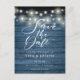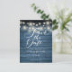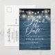 Blå Rustika Strängljus QR-kod Spara datumet Vykort