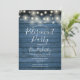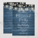 Framhäver strängljus på en blå rustik trpanel bakgrund, kan denna stilrena pensioneringsfest inbjudan anpassas med din speciella evenemangsinfo. Designad av Thisisnotme©