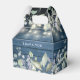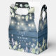 En rustik bröllopspresentlåda med ömtåliga salvia- och lila akvarellblad och vackra strängljus på en blå träpanelbakgrund. Du kan anpassa med ditt eget tackmeddelande på baksidan. Ett perfekt sätt att tacka dina gäster! Designad av Thisisnotme©