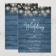 Framvisar vacker trädgårdsbelysning, delikat snö som faller över en blå rustik trähimmel, med era personliga namn, speciella datum och detaljer om bröllopsevenemanget i elegant typsnitt. Designad av Thisisnotme©