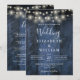 Denna allt-i-ett blå rusticika ladugårdsträdljus bröllopsinbjudan kan anpassas med din information i modern typografi och bröllopsdetaljer på baksidan. Designad av Thisisnotme©