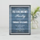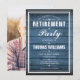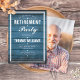 En stilren inbjudan till pensionärsfest kan anpassas med din speciella evenemangsinfo på en blå rustik träpanel bakgrund och speciellt foto på baksidan. Designad av Thisisnotme
