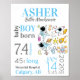 Blå rymd baby Nyfödd födelse statistik skylt innehåller all information om födseln, inklusive datum, födelse tid, vikt och födelseort. Inkluderar illustrerade rymdastronauter och raketer.