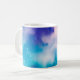 Ett mugg med en bild av ett blått mellanslag på det.