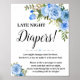 Blått blommigt, babyduschspel. Klicka på "Redigera design" om du vill anpassa eller ändra layouten (ändra ordalydelsen, teckensnittet färg, teckensnittet stil ) HUR DU SPELAR: Ställe-tecknet tillsammans med blöjor och markörer för gäster om du vill skriva en anteckning på en dagbok för föräldrar att vara!