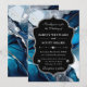 Blå Silver Agat Marmor Glitter Bröllop Inbjudningar