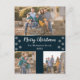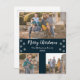 God jul-kort med bilder som innehåller fotokollage, med tre (3) bilder, vit manustypografi och silver snöflake gräns, mot klassisk marin blå bakgrund. Anpassa enkelt dina favoritfoton, färg och text. Photo kredit Photography © Storytree Studios, Stanford, CA.