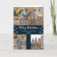 God jul-kort med bilder som innehåller fotokollage, med tre (3) bilder, vit manustypografi och silver snöflake gräns, mot klassisk marin blå bakgrund. Samma gräns med snöflingan mönster på blå bakgrund lägger till baksidan av detta mönster. Anpassa enkelt dina favoritfoton, färg och text. Photo kredit Photography © Storytree Studios, Stanford, CA.
