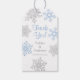 Lapis Blue och silver grått (grått) snowflake vinterbröllop tack för att du föredrar taggar. Den här personligen är en märkre för bröllopsutformning ett underbart val för ett vinterbröllop med ett silver och ett blått snöflingtema för lapis. Alla formuleringar om dessa djärva och moderna vintersnöflingor personlig bröllop-tack-ni-taggar kan ändras. Obs! Detta är en platt tryckt design utan några 3D- eller höjda präglingar. Silver färg simuleras av bläck och är inte av metall.