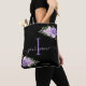Blå sjöblomma i ro, Modern Minimalist Elegant Tote Bag (färg kan ändras) personligens monogramdesign som kan vara personlig med ett inledande och namn i skript. Perfekt-gåva till din bröllopsfest - maid of honor, brudgummar, budens mamma och brudgummi. enkel modern monogram, blå marin ro-blomma, monogram, skript, elegant, modern, giftig, monogrammad, chictrendy, trendig-snyggt.