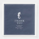 Biet i denna elegant bröllop-svit har en klassisk nautisk stil med ett rent, minimalistiskt utseende. Stilistiskt vågar i skuggor från akvatblått till marinblått och en sjöillustration ger unika accenter. På denna samordnande pappra napkin är den lilla sjövägen i vitt på marinblå bakgrund enkel men öga fångande. Lägg till ditt "Tack"-meddelande, namn och bröllop-datum med hjälp av den angivna mallen. Perfekt för klubb, båt, vid sidan av eller sommardestination. Sök i ID836 för att se denna fullständiga svit och andra med alternativa marina accenter från inslag.