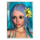 Cute sjöjungfru med blått och grönt hår och gult vatten lilja på en blå fantasi-bakgrund