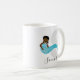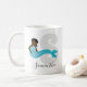 En sjöjungfru mugg med en leende sjöjungfru, anpassade namn och början. Det övergripande färg-programmet är blått, brunt, grått och vitt. Sjöjungfrun har brun hudfärg och svart hår. Anpassa bara namn och börja, lägg till mugg i din kundvagn och njut av nästa dryck med en sjöjungfru. Blå Sjöjungfru Namn Monogram Kaffe Mugg Holiday Design | ©Melissa Patton Artist/Illustrator