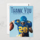 Tack skriven i hög blå typografi över ditt höga foto från porträtt student gör ett enkelt tack till studenten för en fotbollsspelare i ett idrottslag. Anpassa med ditt namn och klass 2023 på dessa minimalistiska textöverlägg över vykort för student. Skriva ett personlig tackord på baksidan.
