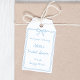 En presentidé inspirerad av Something Blue som lägger en tidlös, sofistikerad touch till din bröllopsfest. Med en handritad slinga och en scalloperad kant är denna eleganta blå design perfekt för förberedda, coastal chic eller klassiska bröllopsteman. Använd den för att förhöja presentpåsar, godsaker och minnessaker med en förfinad och personlig detalj. Anpassa med brudens namn och evenemangsinformation för en chic slutlig touch.