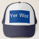 "Yer Wot." Lustigt truckerkeps för hörselskadade. En enkel slogan som också kan elak "Skojar du?". Finns i andra färg och stilar av hattar.