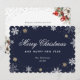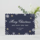 Elegant blå julkort med en charmig ram av fallande snö, snöflingor och stjärnor mot en blå bakgrund. Ett elegant skrivstil används för att ge en mer festlig look till detta gratulationskort. Personalisera enkelt detta icke-foto-julkort online.