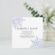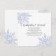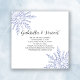 Meddela din kommande december-, januari- eller februaribrollop med vinterlandskapstema med den festliga Blå Snöflingan på Vita Vinterbröllop Spara Datumet Annonsering. Intrikata blåtonade snöflingor pryder hörnen av denna klassiska vinterbröllopsannonsering med vitt bakgrund. Tillgänglig som ett tryckt inbjudningskort för postning eller som en digital nedladdning för enkel delning online.