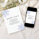 Sätt en elegant ton för ditt kommande december-, januari- eller februaribröllop med vintervackra tema genom det festliga Blå Snöflinga på Vit Vinter Bröllop Spara Datumet-kortet. Invändiga blåfärgade snöflingor pryder hörnen på detta vinterliga äktenskap håll datum-meddelande med vit bakgrund. Finns tillgängligt som ett tryckt inbjudningskort för postning eller som en digital nedladdning för enkel delning online.
