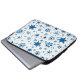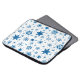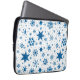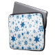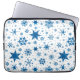 Ljusblått snöflingemönster på vit bakgrund med olika former och storlekar. Perfekt för vinter-, högtid- och jul-teman, gratulationskort och festliga designprojekt.