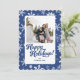 Detta fotoholidaykort har en mörkblå bakgrund och unikt snöflingmönster. Ett djärvt typsnitt knyter samman designen. Lägg till dina foton och hälsning för att göra det unikt!