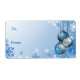 Festiv märkre med blå hängande ornament och snöflingor. Ändra storlek och text för en anpassad adressetikett för helgdag. Matchningsinbjudan är tillgänglig.