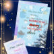 Fira magin med vinter med detta blå snöflinga jul- och nyårskort med siluetter av renar och gnistrande högtidelement. Ett perfekt säsongsbetonat nedladdningsbart kort för glada vinterönskningar.