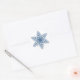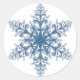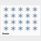 Blå snöflingstickor runt klistermärke