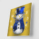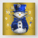 Blå Snögubbe vid Guld-julen Fyrkantig Klocka