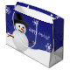 Lägg dina julklappar med den här vismliga och festliga blåvingen i Snögubbe. Presentsäcksdesignen har en lycklig snögubbe i en snövintridsscen mot en royal blå bakgrund med matchande färg snöflingor. Ytterligare presentartiklar och helgdag som är tillgängliga med den här designen också.