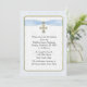 Snyggt religiösa inbjudan till pojke med blått och vitt snöre gräns och vitt snöre som ser under text, guld ram med blått band och guld kor grafik. Passar för baptismer, stolpar, kommentarer eller bekräftelser. Skapat med originalteckningar.