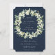 Hand målade snöbär och stammar av eukalyptus placerade i en vacker andedräkt mot en mörk marin bakgrund. All text är helt redigerbar så att du enkelt kan ändra både ordalydelsen och teckensnittet stil/färg/storlek. Baksidan har en valfri spridning av punkter. Visa den här samlingen i butiken för inbjudningar med alternativa ordningsalternativ, olika färg och för samordning av punkter.