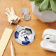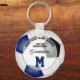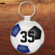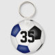 Den här enkla och personliga nyckelringen för fotboll har en realistisk bild av en fotboll som har blå, svarta och vita paneler, där du kan anpassa idrottsmannens namn, jersey-nummer, team & mascot namn och år på framsidan och i monogram eller brev på baksidan - av katz_d_zynes